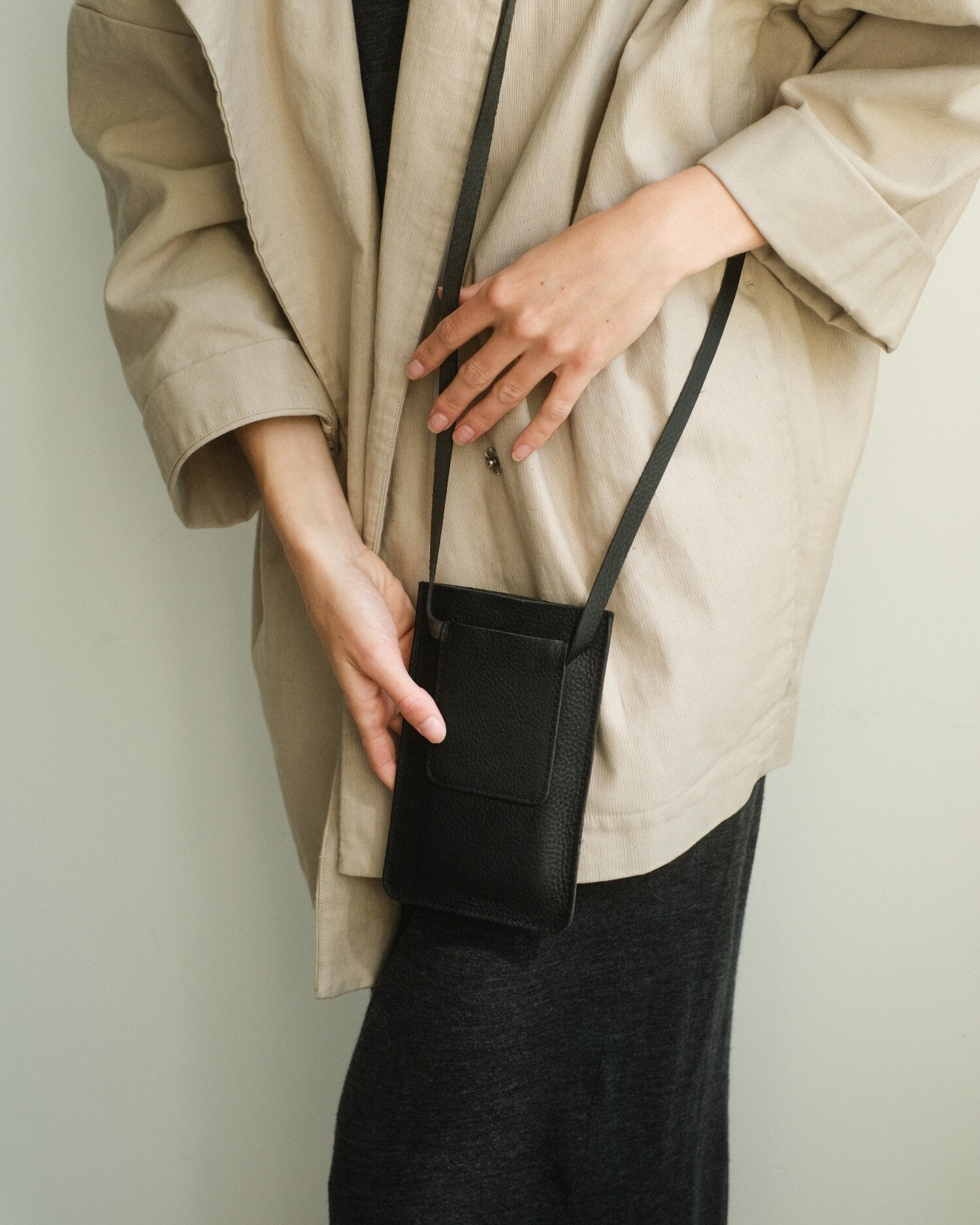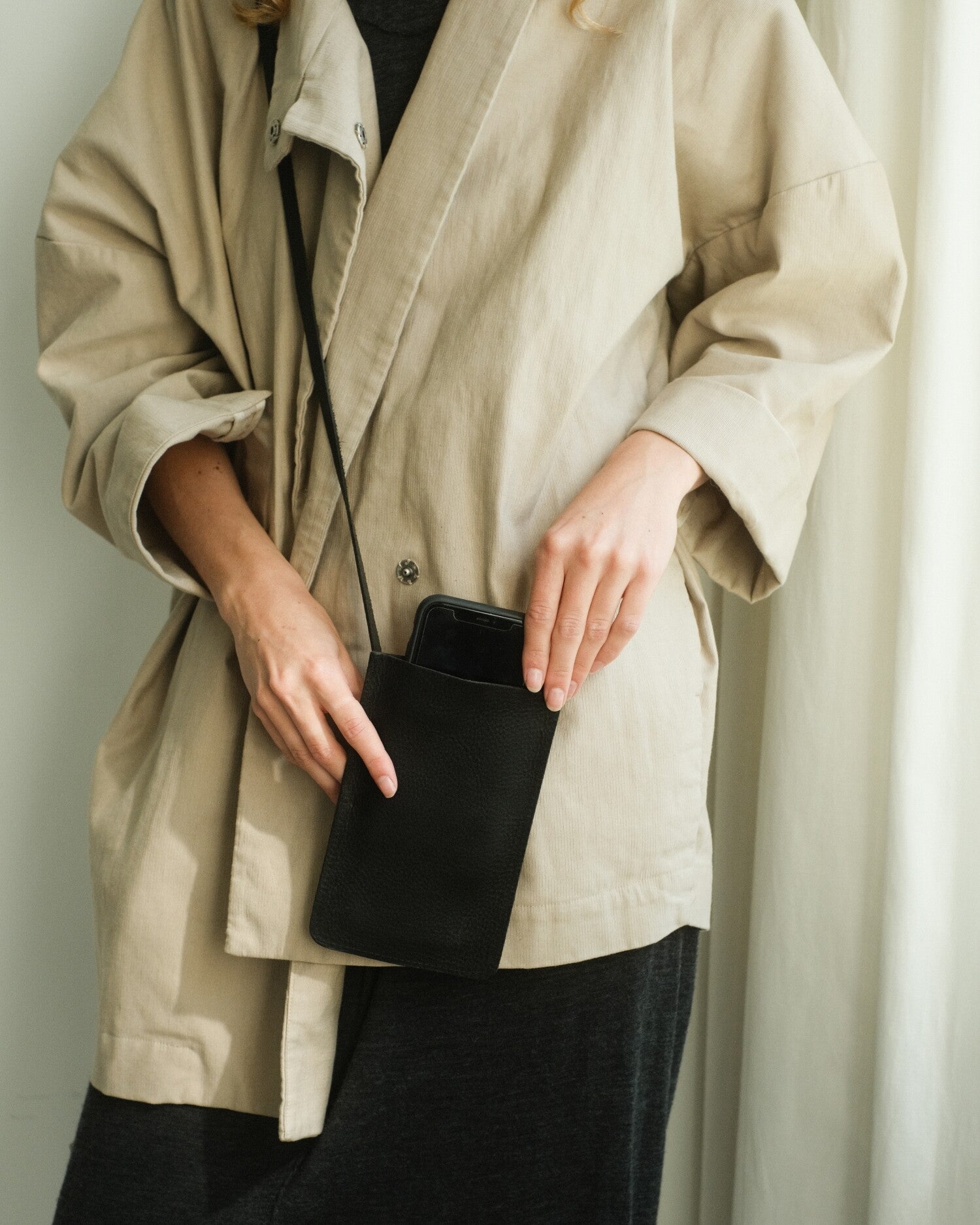 Basic minimalistisch telefoontasje met handig extra zakje op de achterzijde12cm x 18,5cmMATERIAALCertified Italian vegetable tanned bovine leather.