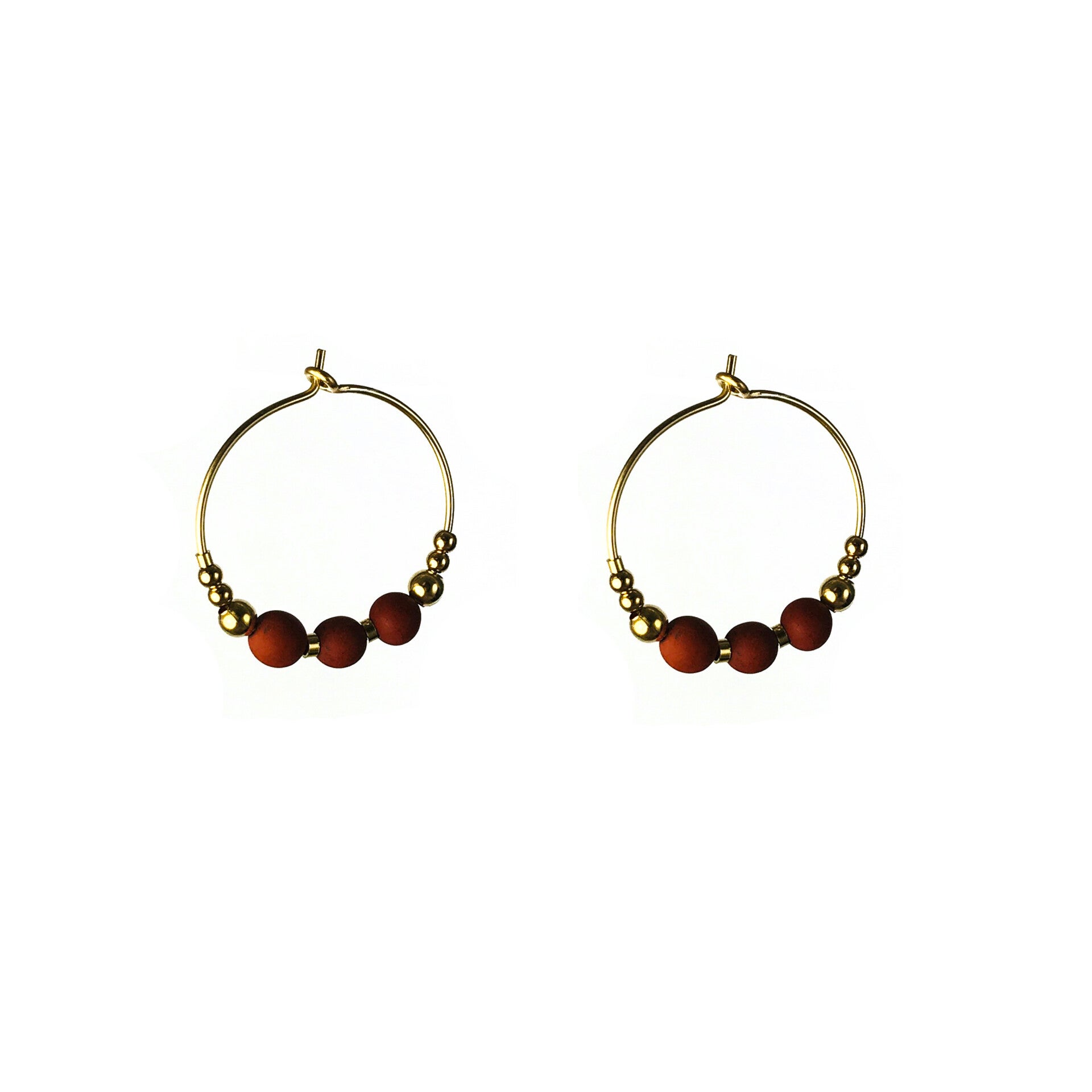 Blinckstar Vergulde Oorringen met bruin-rode kraaltjes