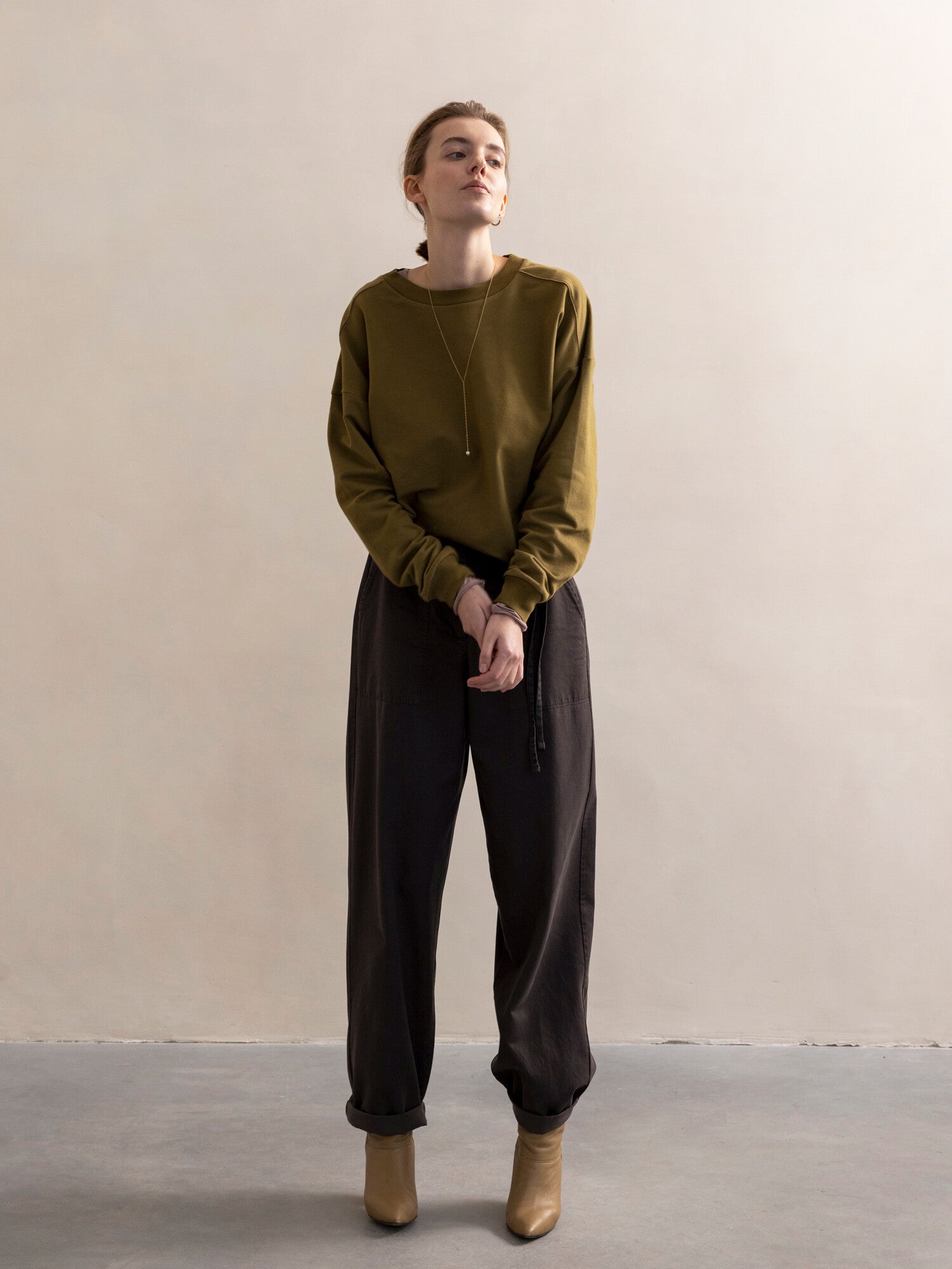 Phae Woman Broek Wide Woven Pants ( Dark Moss)