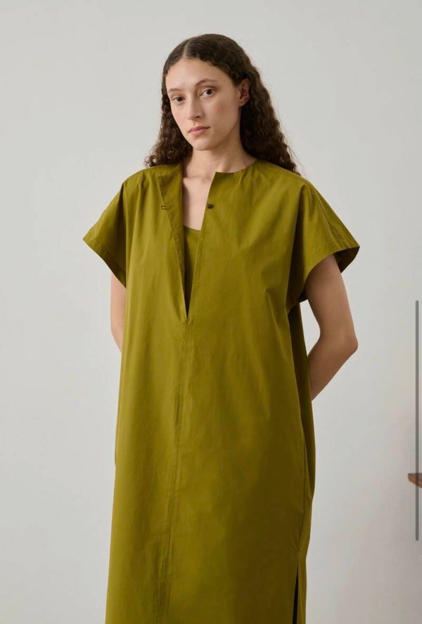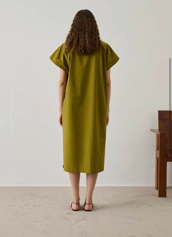 Rechte jurk in bijzonder mooie kleur, met kapmouwtje