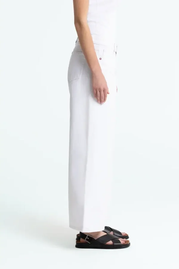 Kekke witte jeans loopt al wat uit vanaf de bovenbenen